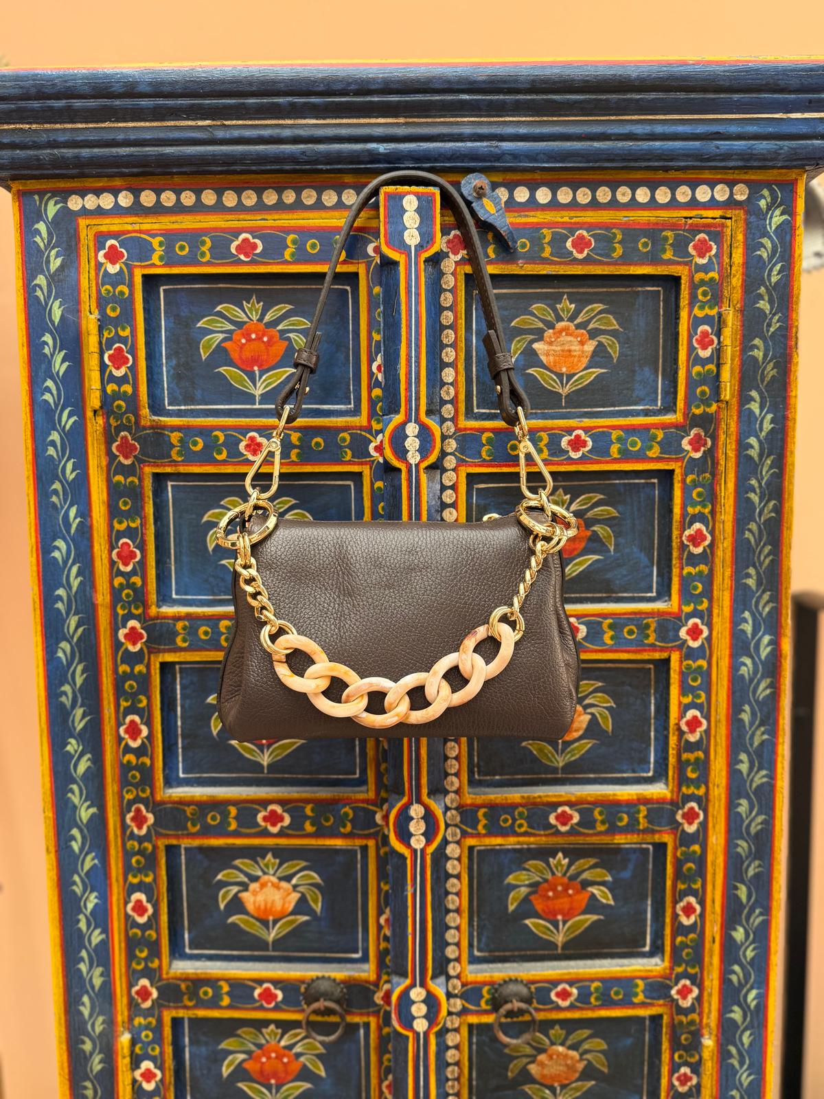 Le nostre creazioni, per loro natura artigianale, potrebbero mostrare delle lievi peculiarità che a occhi meno esperti potrebbero sembrare imperfezioni. In realtà, sono queste le tracce distintive dell'autentica manifattura artigiana, testimoni inconfutabili della genuinità del fatto a mano. Questi dettagli esaltano l'eleganza delle nostre borse, arricchendo il loro carattere unico.
