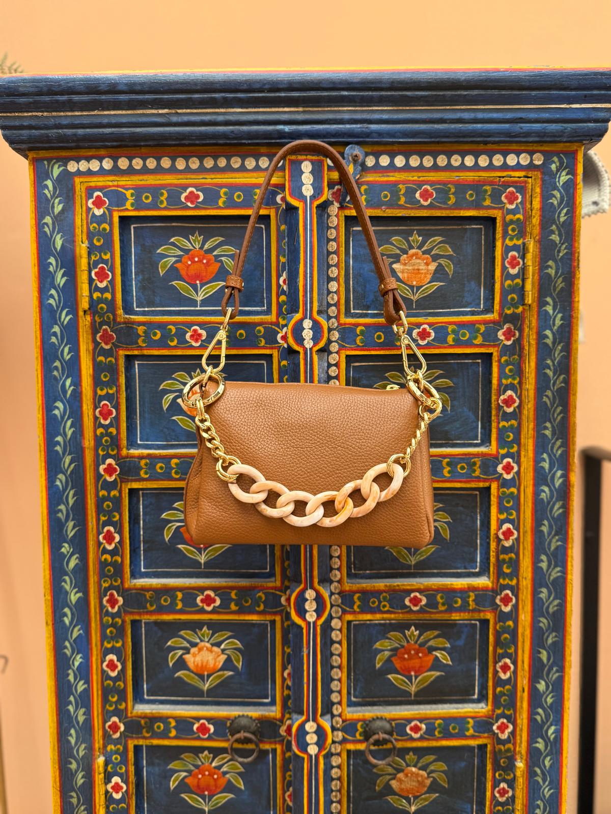 Le nostre creazioni, per loro natura artigianale, potrebbero mostrare delle lievi peculiarità che a occhi meno esperti potrebbero sembrare imperfezioni. In realtà, sono queste le tracce distintive dell'autentica manifattura artigiana, testimoni inconfutabili della genuinità del fatto a mano. Questi dettagli esaltano l'eleganza delle nostre borse, arricchendo il loro carattere unico.